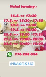 Volné termíny 16. – 22.5.