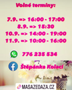 Volné termíny v týdnu 5. – 11.9.
